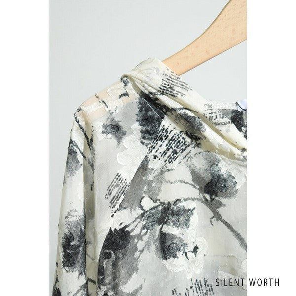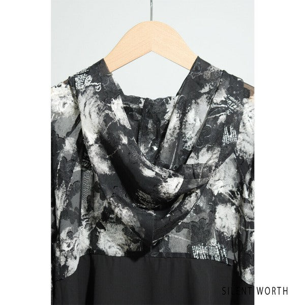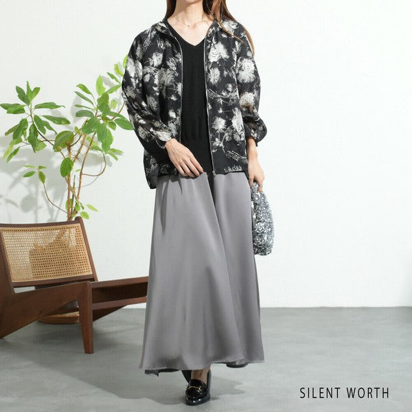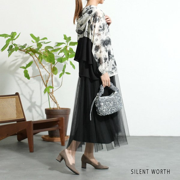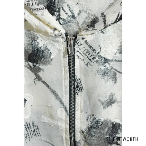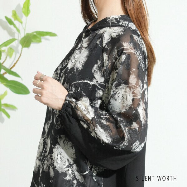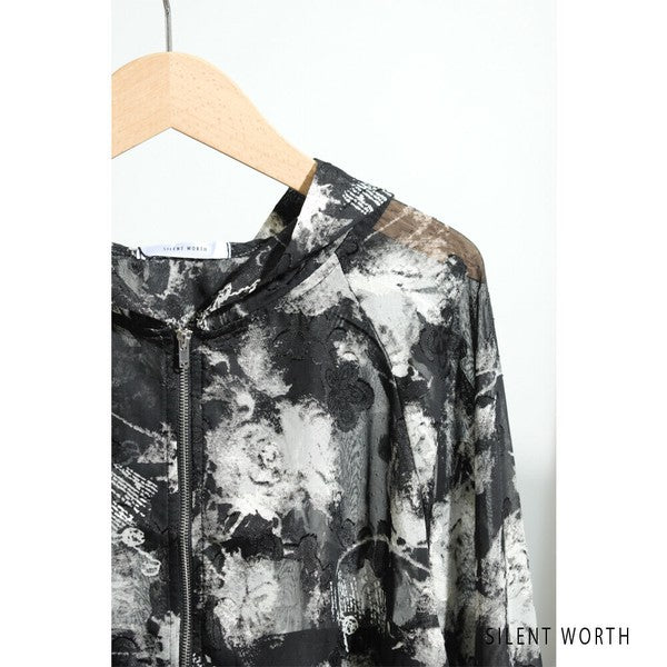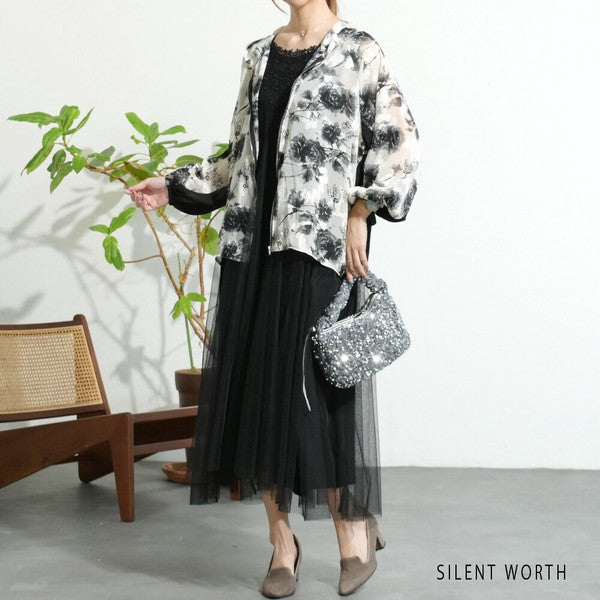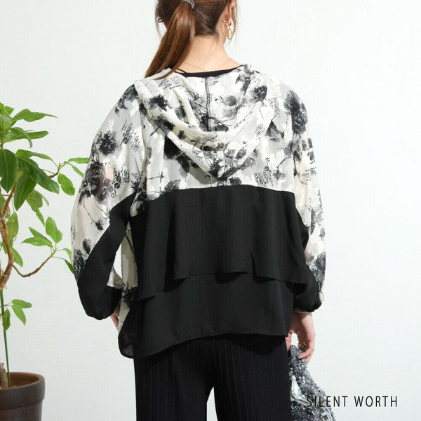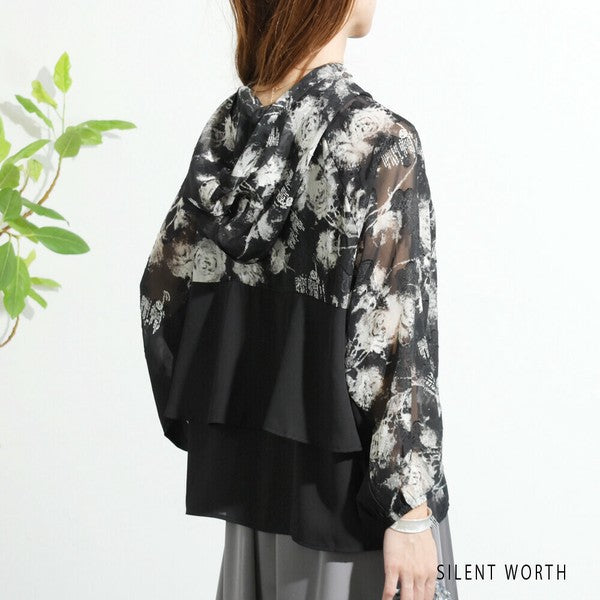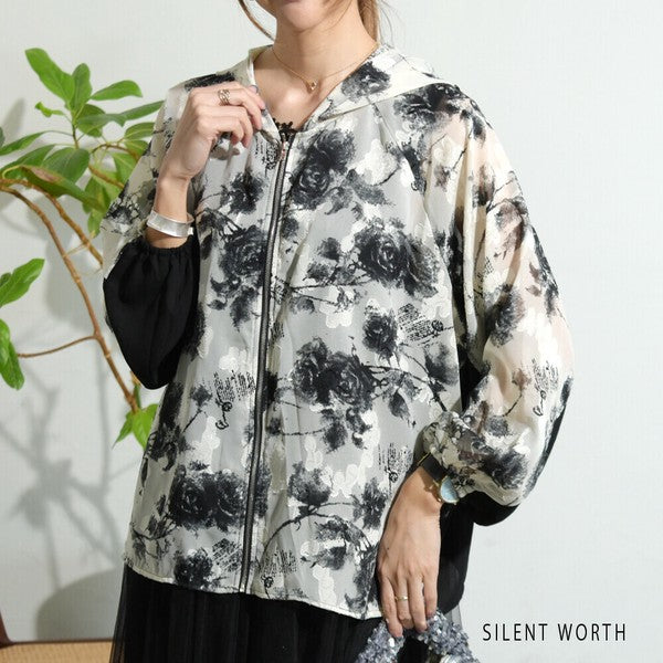 繊細な花柄とブラックの切替が印象的なシアーパーカー。