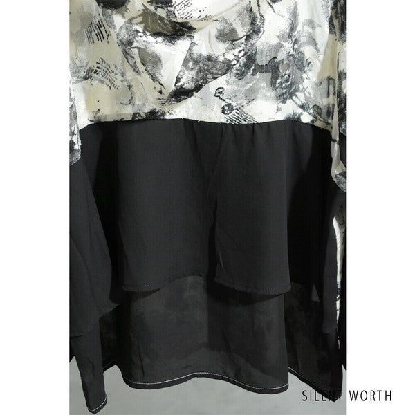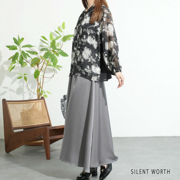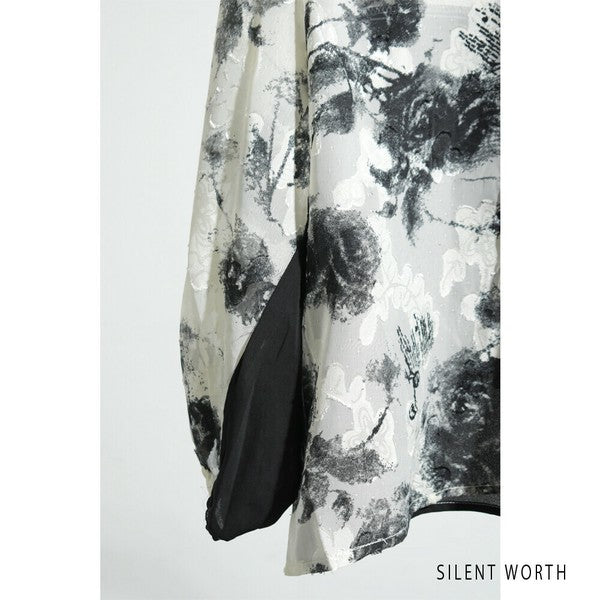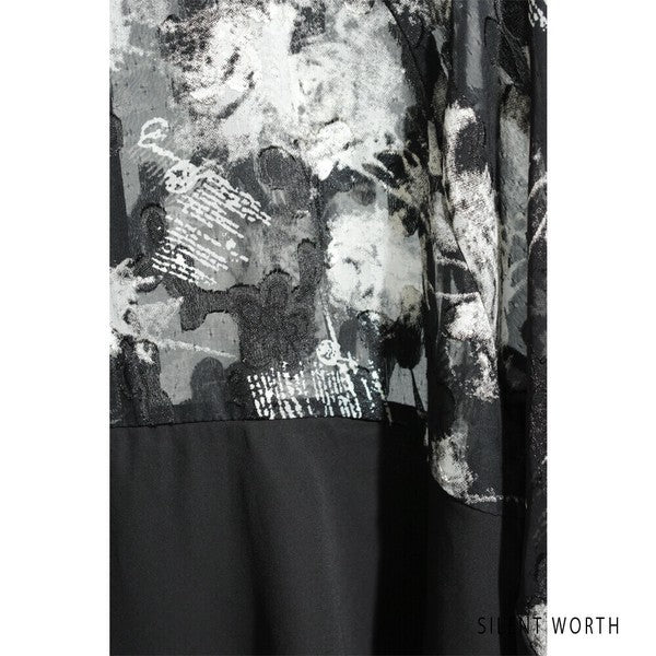 モノトーンの花柄×ブラック切替が目を惹くモードな一枚