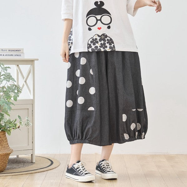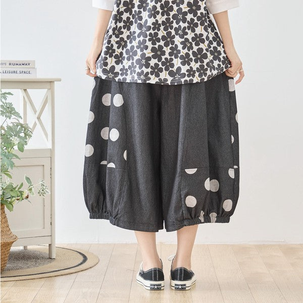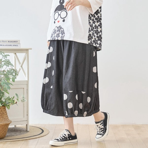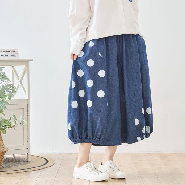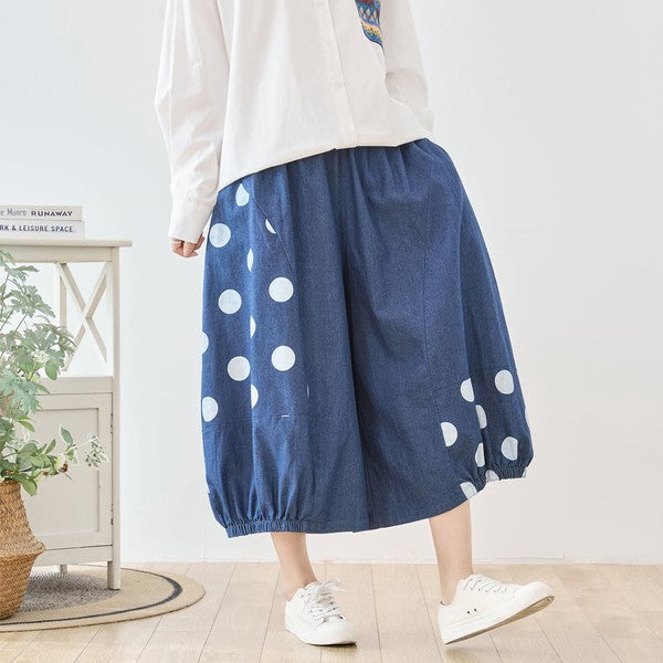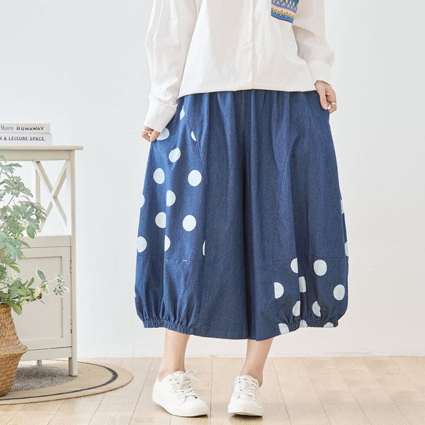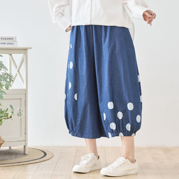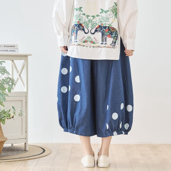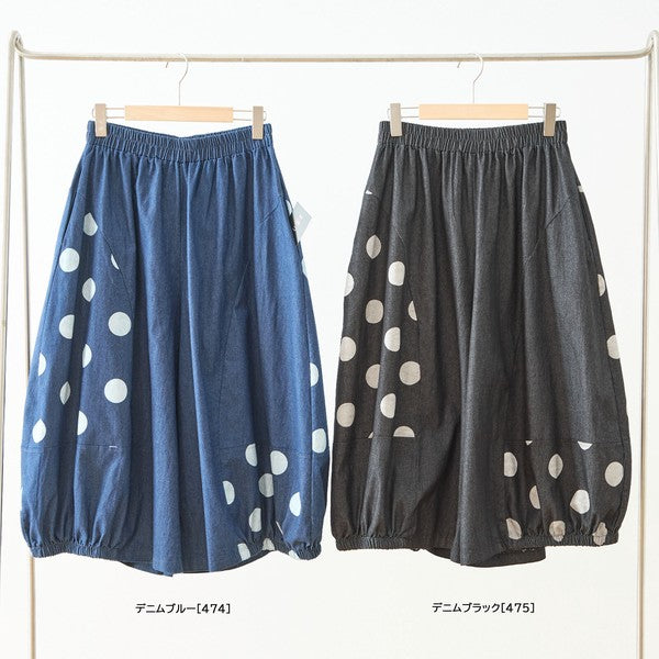 【M〜L】ドット切り替えバルーンデニムパンツ 大人可愛い個性派シルエット 綿100%