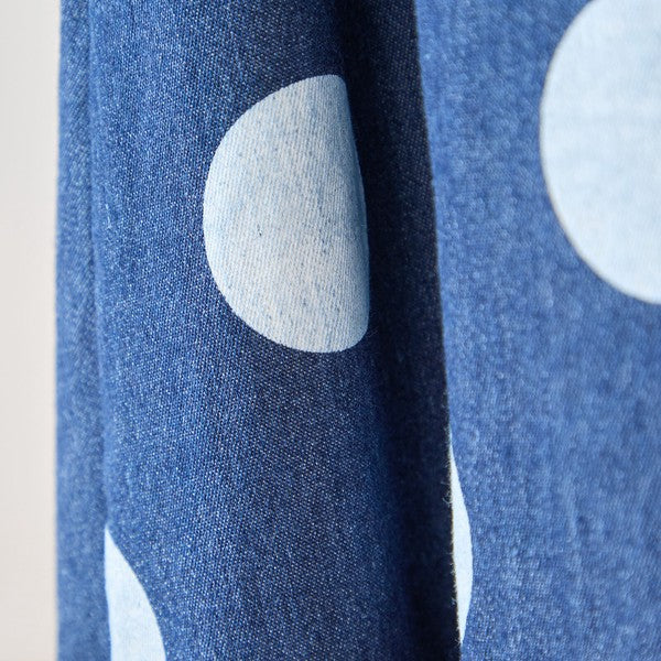ドット柄の切替デザインが目を惹く、TRUBEらしい遊び心を感じるバルーンデニムパンツ。丸みのあるシルエットが足元に自然な立体感を生み、シンプルなトップスと合わせるだけで存在感のあるスタイリングが完成します。ウエストは総ゴム仕様で、リラックスした穿き心地も魅力。綿100%のデニム素材を使用し、季節を問わずデイリーに活躍する一本です。
