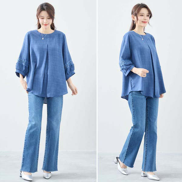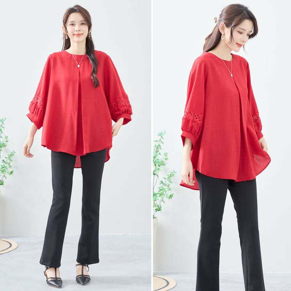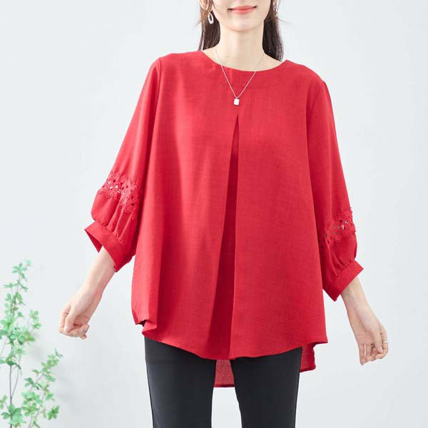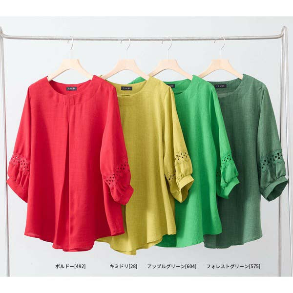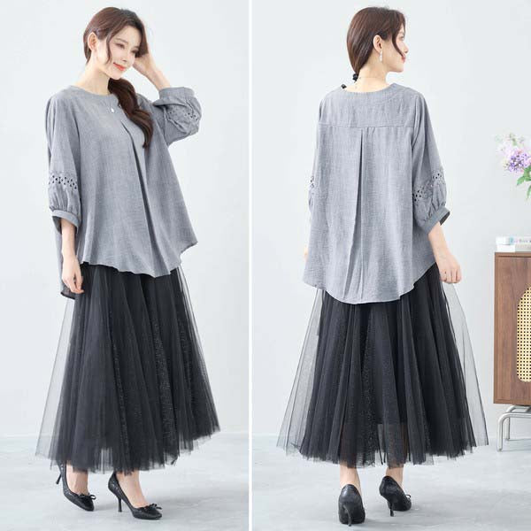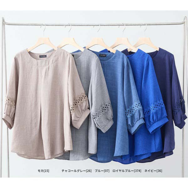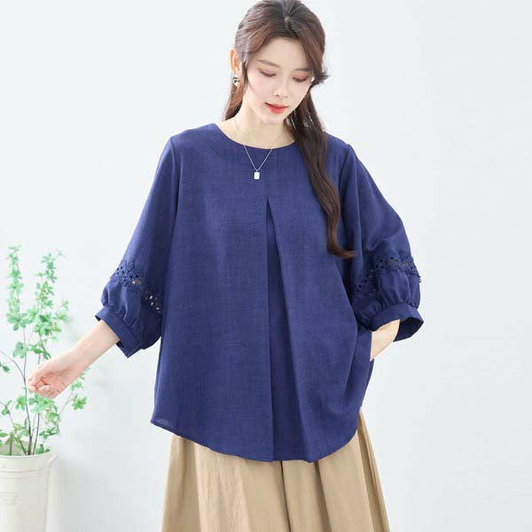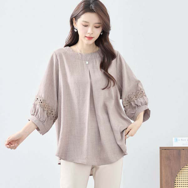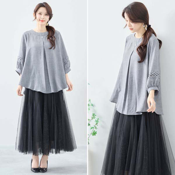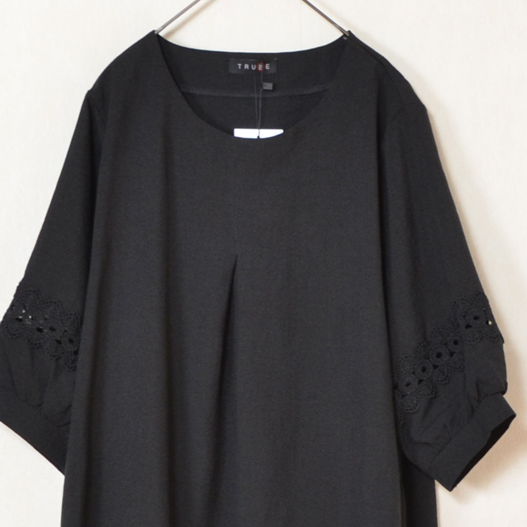 【L〜LL】7分袖チュニック|レース袖&タックデザインが上品映え(C31-2206)