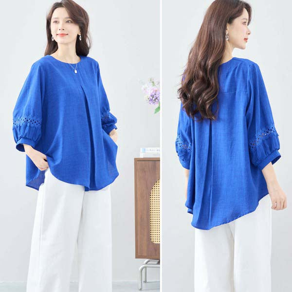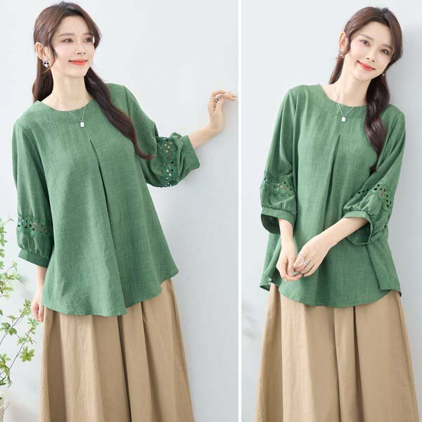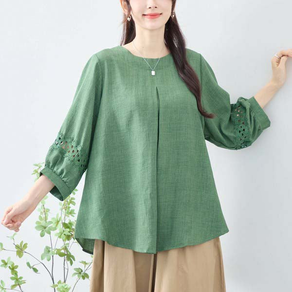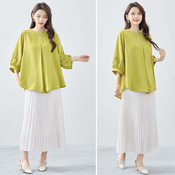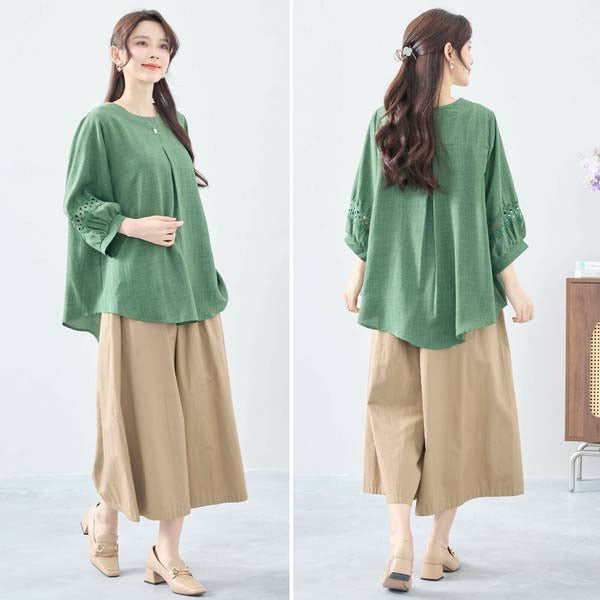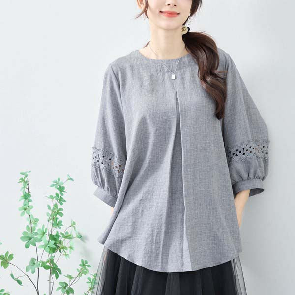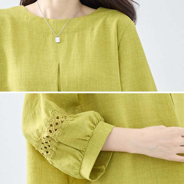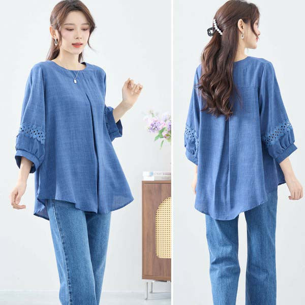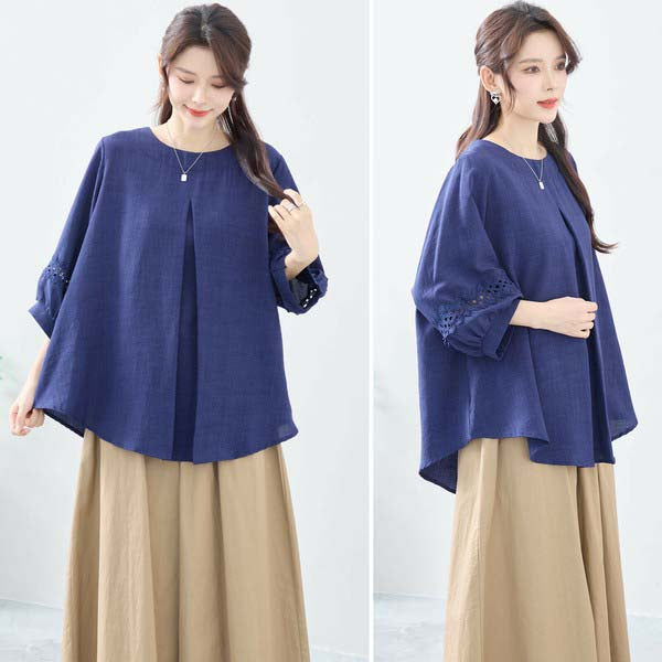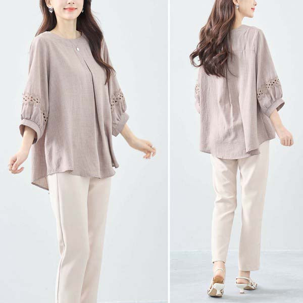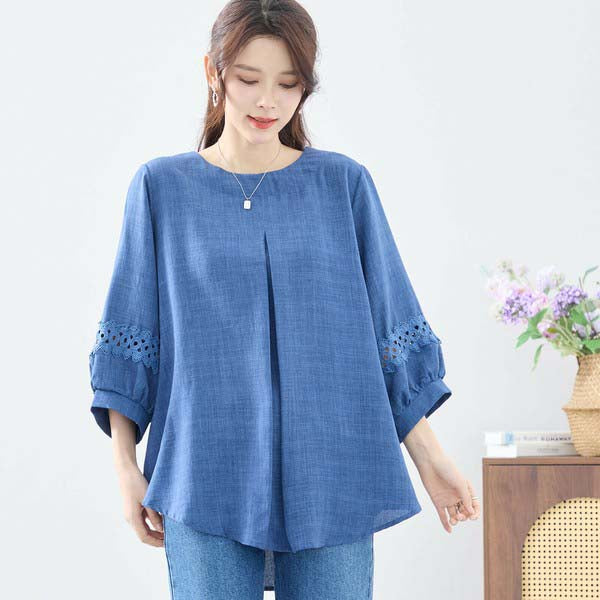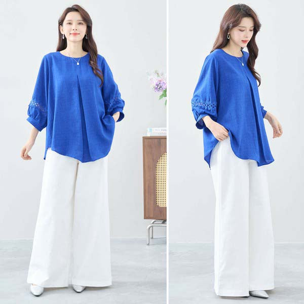 【L〜LL】7分袖チュニック|レース袖&タックデザインが上品映え(C31-2206)
