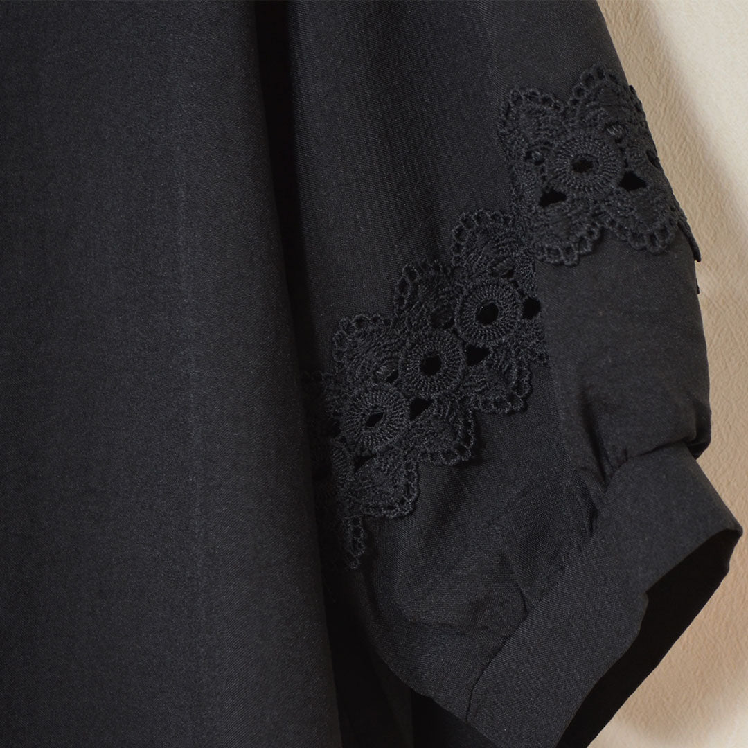 上品さと着心地を両立させた大人のためのチュニック。ポイントレースの袖と、さりげないタックデザインが華やかさをプラス。軽やかなポリエステル素材で通気性もよく、オンオフ問わず使える1枚です。